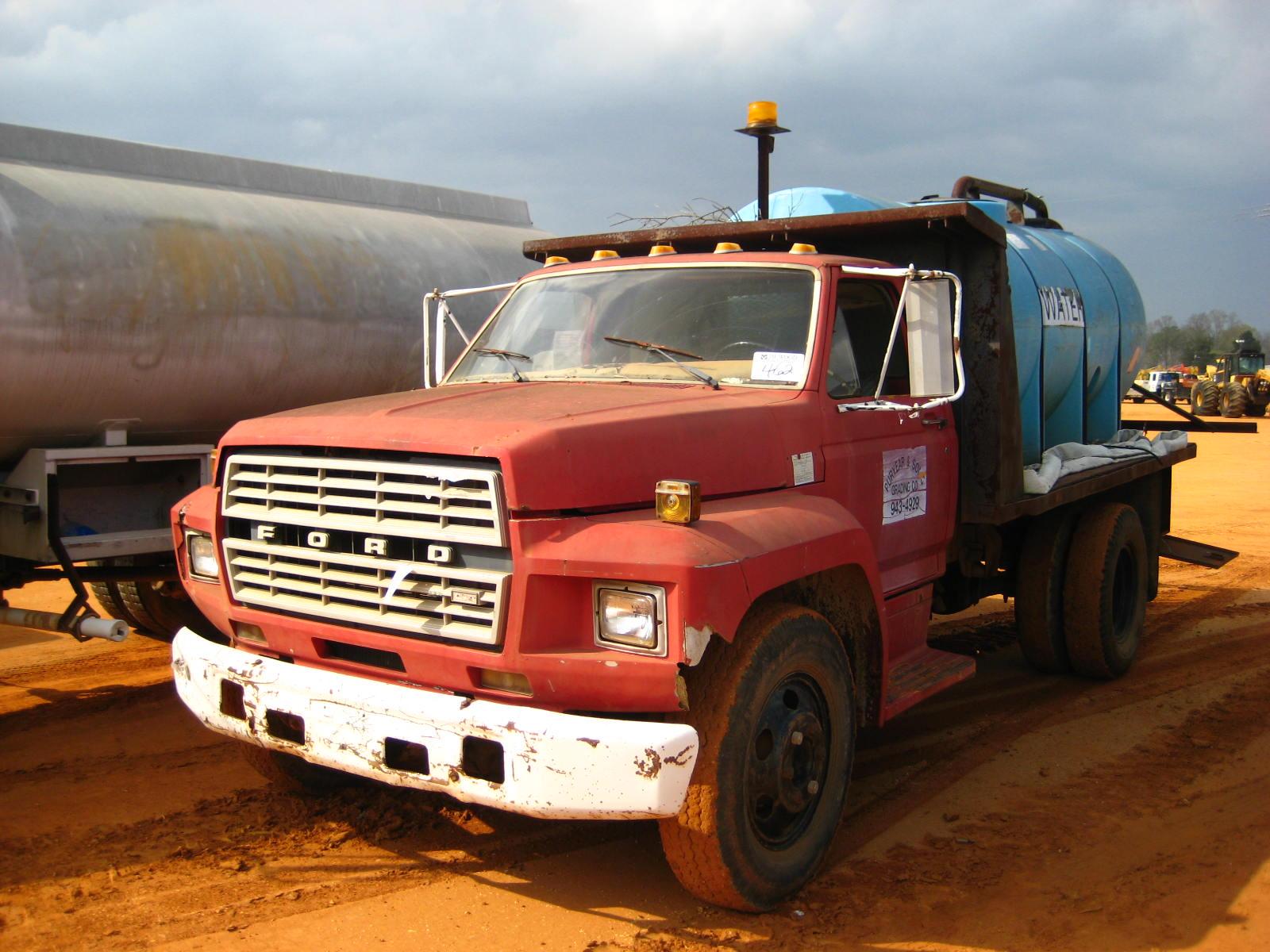 1980 Ford F600 Water truck with 1600 gallon poly tank Has pump assemble but needs a pressure switch to operate May have other defects For motor has miss and needs a tune up, must jump start Also has exhaust leak Front fenders are damaged and drivers side steps have rust holes Guages dont work in cab, SOLD as is